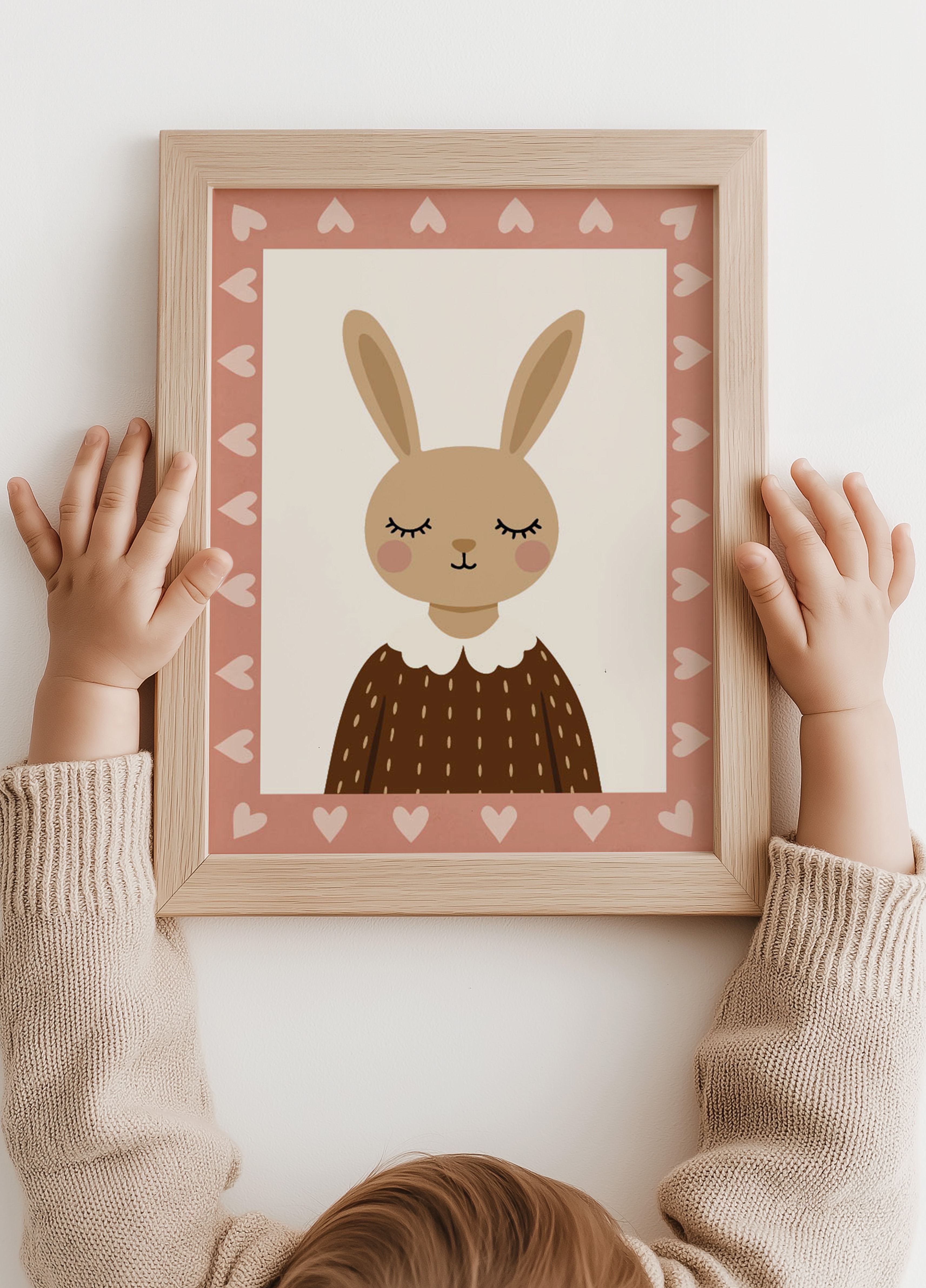 De poster met het lieve konijntje is perfect voor een zachte meisjeskamer. De warme kleuren en lieve uitstraling maken hem ideaal voor boven een bedje of als onderdeel van een kleine gallery wall. Het konijntje geeft de kamer een dromerig gevoel en past prachtig bij het romantische behang.