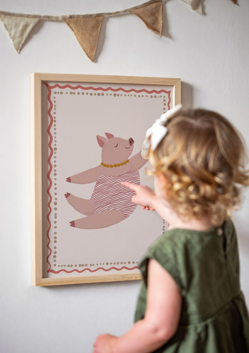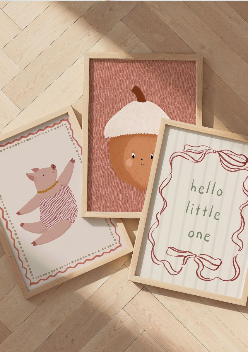 De posters in dit moodboard zorgen voor de speelse finishing touch. Zachte illustraties en vriendelijke kleuren maken de kamer persoonlijk en gezellig. Door verschillende posters te combineren binnen hetzelfde kleurenpalet ontstaat een rustige gallery wall met een dromerige uitstraling. Mooi boven het bedje, bij een speelhoek of als klein kunsthoekje waar je elke dag weer iets nieuws in ontdekt.