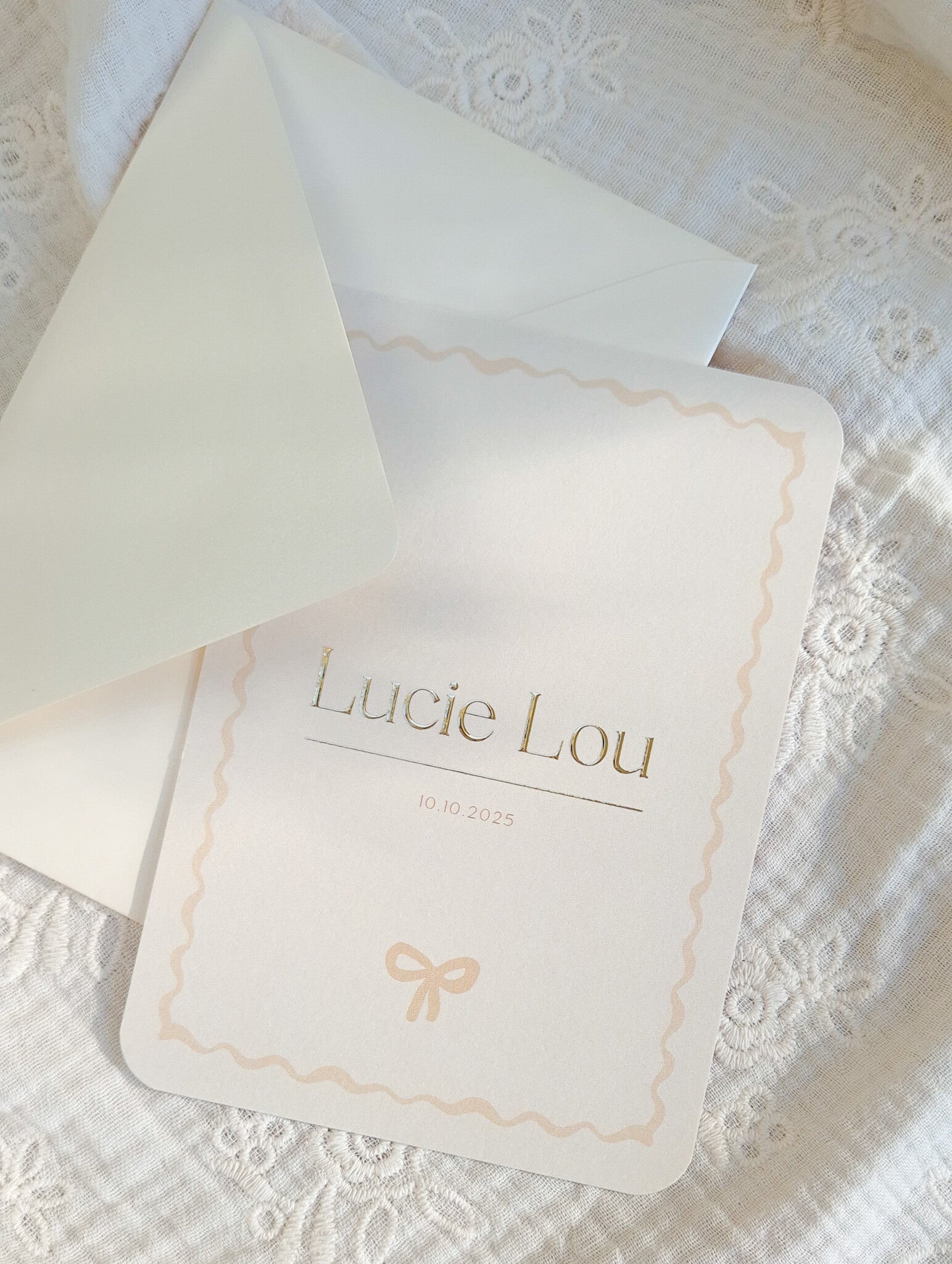 Hier vind je onze collectie geboortekaartjes voor meisjes, stuk voor stuk met liefde ontworpen. Denk aan kaartjes met mooie foliedruk, lieve bloemen, een bijzondere vorm of een knipoog naar de maanstand of het sterrenbeeld van jullie kindje. Alles net even anders, speciaal voor ouders die iets unieks zoeken.