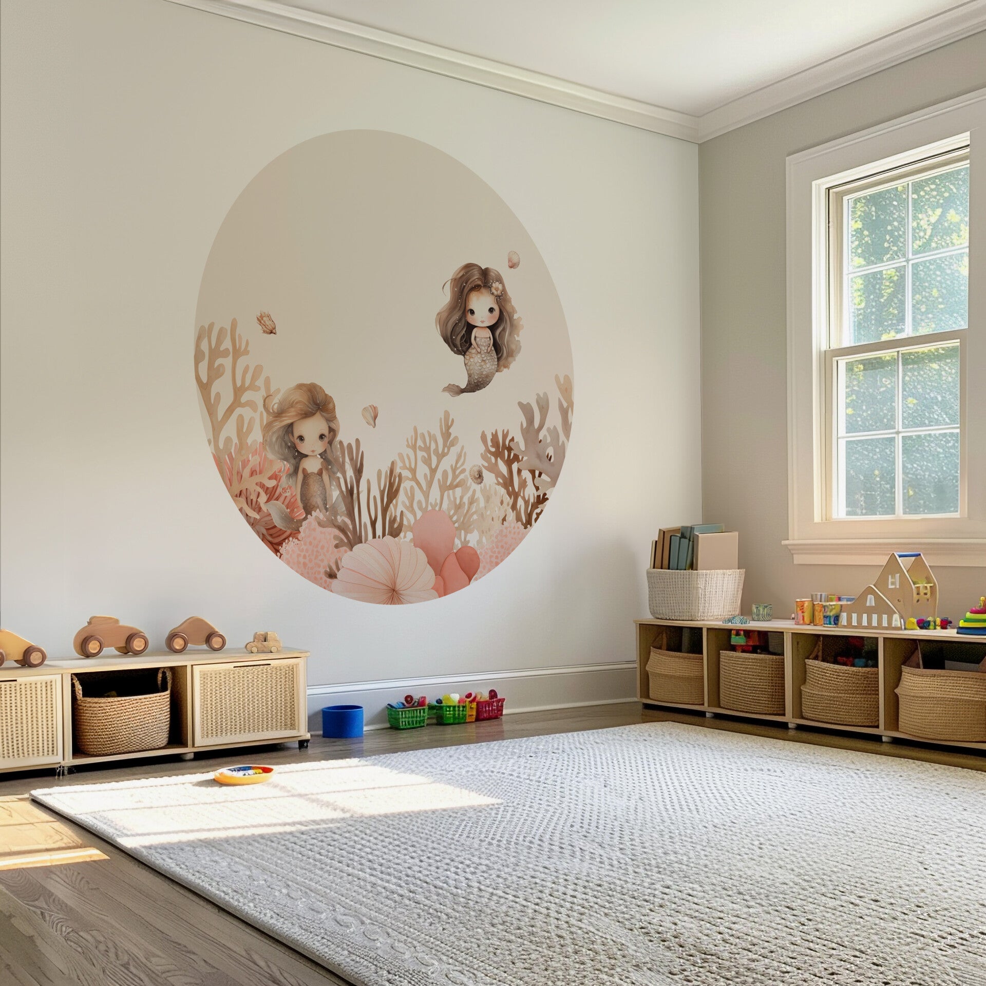 Serie Little Mermaids is nieuw in onze collectie en wat zijn wij er verliefd op! Combineer deze behangcirkel met één van de losse posters voor een prachtig geheel.