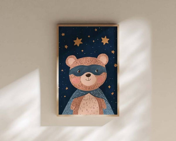 WOESJH. Deze leuke poster van een beer in de ruimte is favoriet van Lisanne haar zoon Lennon. Heel leuk te combineren in verschillende interieur stijlen en thema's.