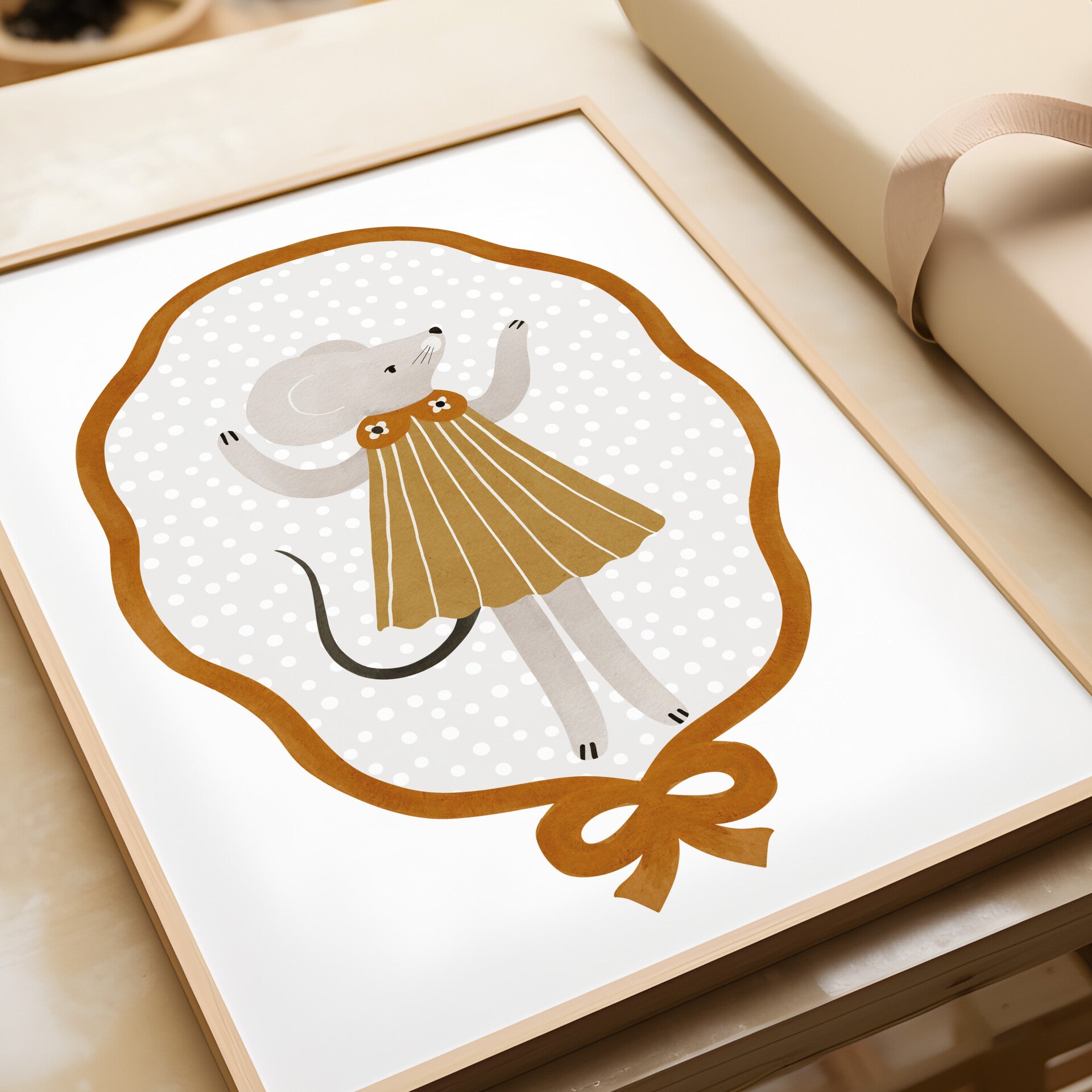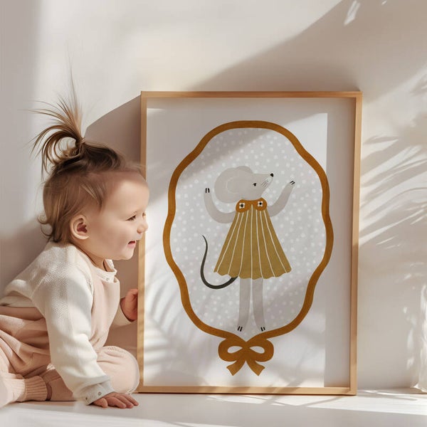 Geef de kinderkamer een stijlvolle en speelse touch met deze prachtige retro kinderkamer poster. De zachte aardetinten en unieke illustratie van een muis zorgen voor een gezellige en warme sfeer in elke ruimte.