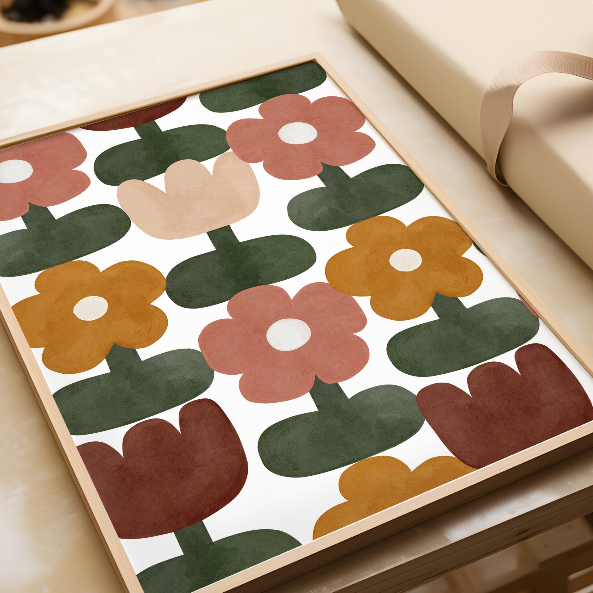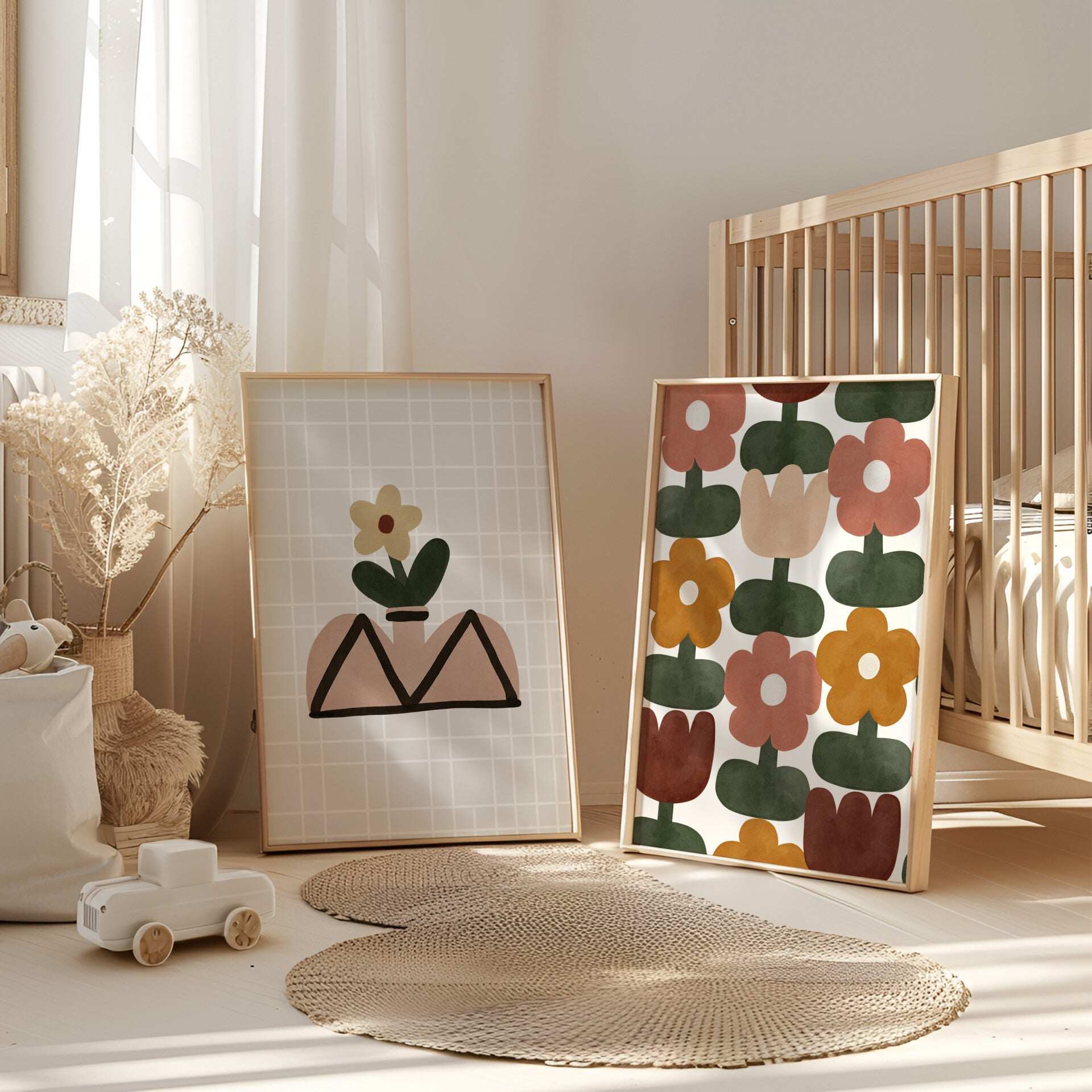 Geef de kinderkamer een stijlvolle en speelse touch met deze prachtige retro kinderkamer poster. De zachte aardetinten en unieke illustratie van bloemen zorgen voor een gezellige en warme sfeer in elke ruimte.