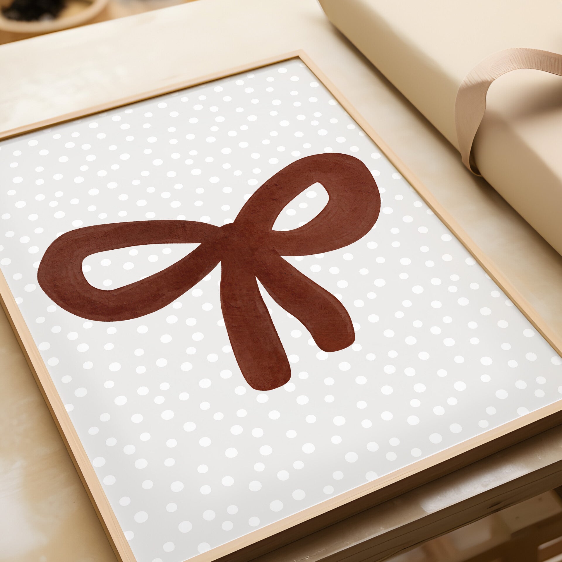 Geef de kinderkamer een stijlvolle en speelse touch met deze prachtige retro kinderkamer poster. De zachte aardetinten en unieke illustratie van een strik zorgen voor een gezellige en warme sfeer in elke ruimte.