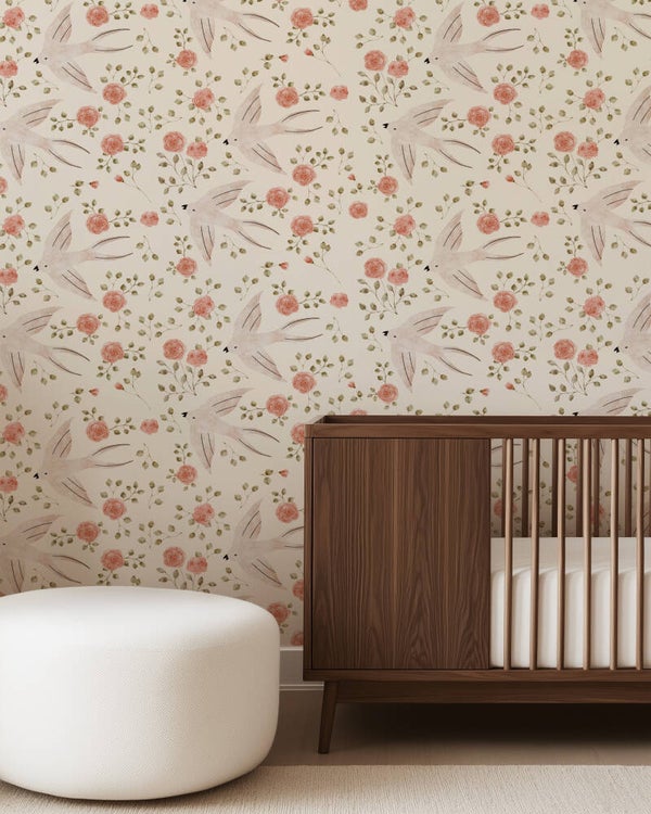 Laat je kindje wegdromen met dit betoverende vliesbehang vol sierlijke zwaluwen en zachte rozen in warme, rustige tinten. Dit behang is perfect voor een knusse, dromerige kinderkamer waar fantasie en rust samenkomen. De handgetekende stijl en subtiele kleuren geven de kamer een speelse maar verfijnde uitstraling, zonder te druk te worden.