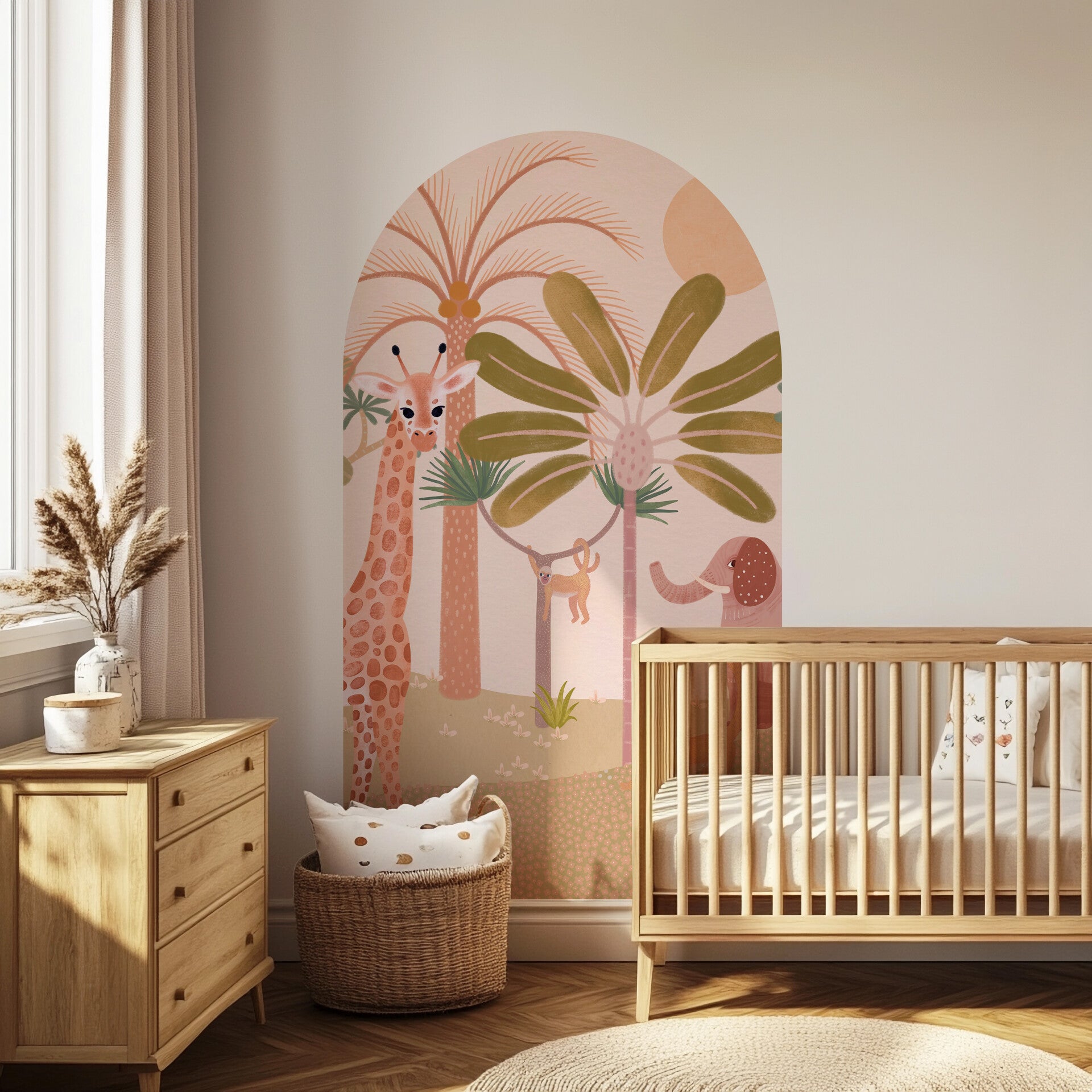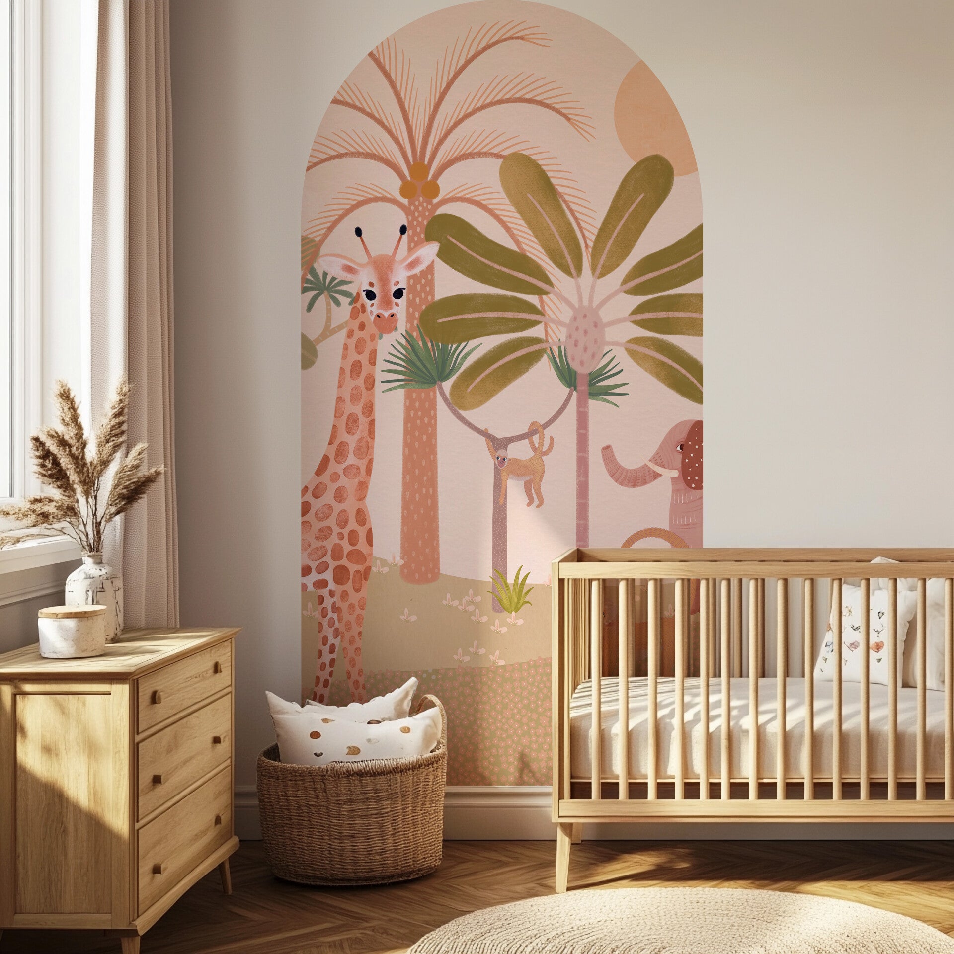 Ontmoet een nieuwsgierige giraf, een speelse aap, een relaxte luipaard en nog veel meer dieren die elke kinderkamer omtoveren tot een tropisch feestje.