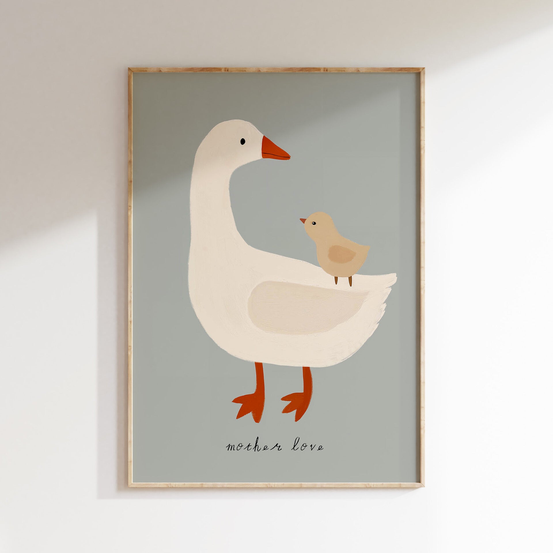 Geef de kinderkamer een trendy en speelse touch met deze leuke kinderkamer poster van moedergans en baby gans. Een knipoog naar de liefde voor je kleintje.