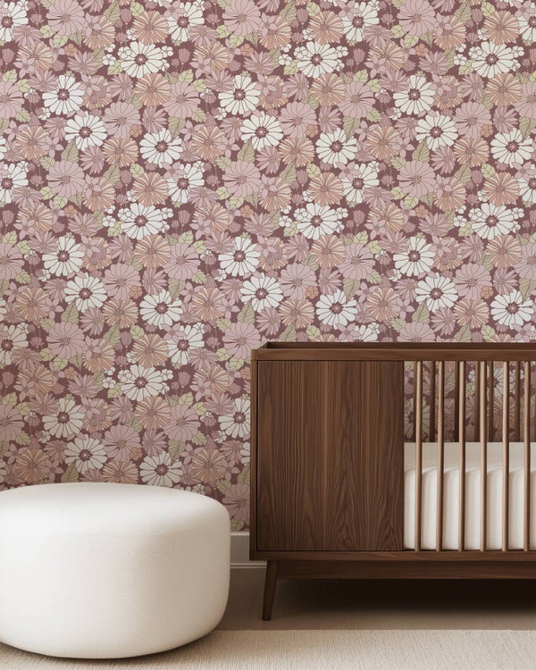 Retro Bloemen Behang Lila – Sfeervolle Kinderkamer Met Vintage Touch