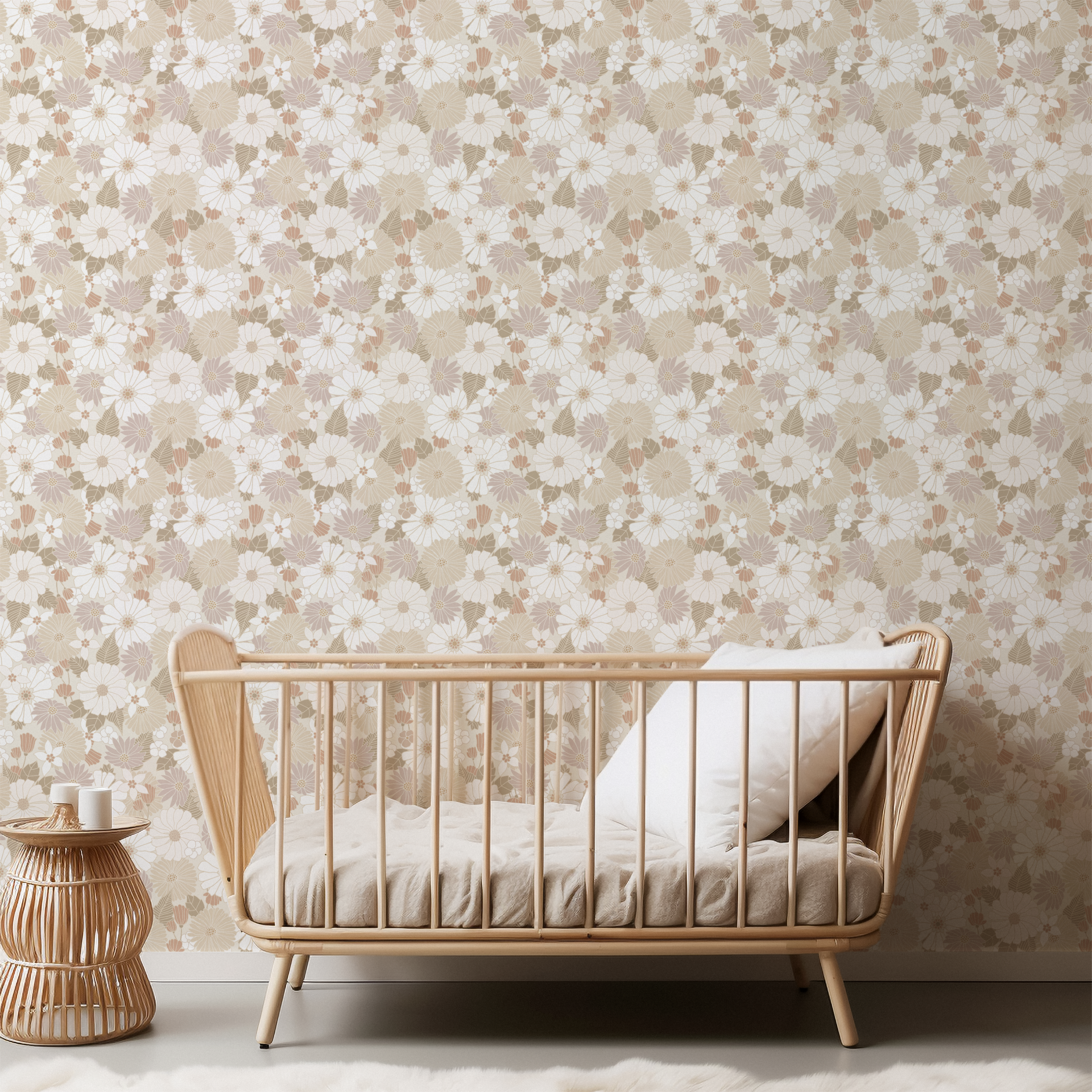 Retro Flowers – Beige Bloemenbehang voor een Zachte Kinderkamerstijl