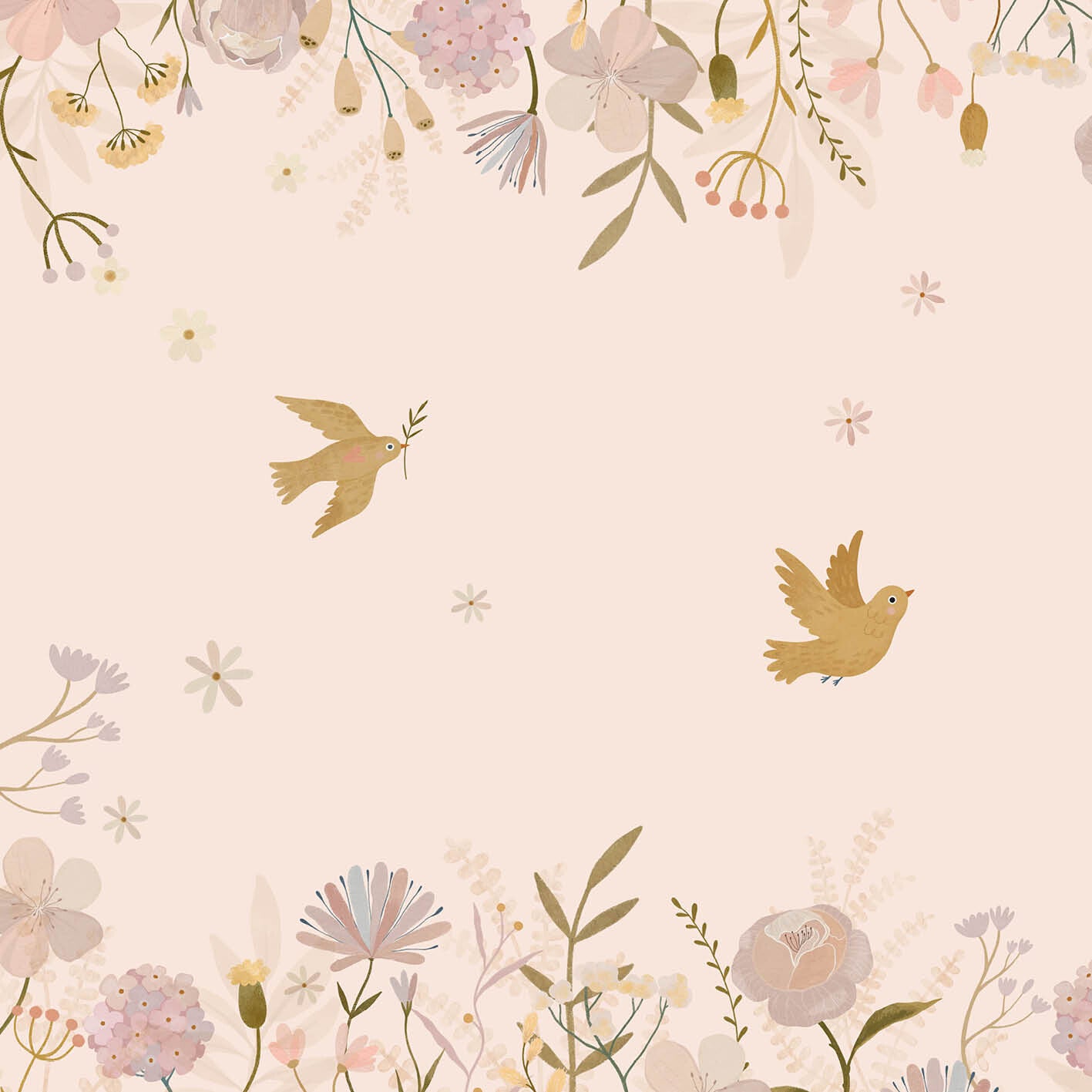 Breng rust, tederheid en een vleugje magie in de kinderkamer met Garden Lullaby. Dit zachte collagebehang combineert dromerige bloemen met vrolijke vogeltjes in een schilderachtig decor dat je kleintje omringt met warmte en geborgenheid. De handgeschilderde illustraties in poederzachte tinten creëren een rustgevend tafereel dat zowel speels als stijlvol is.
