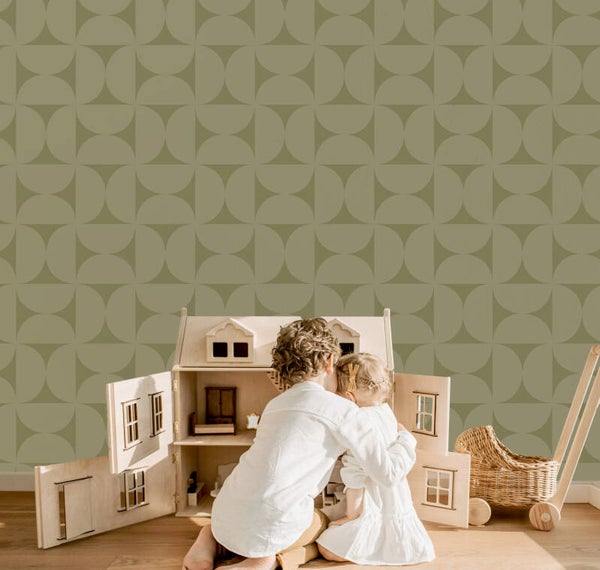 Hou je van een speels, grafisch patroon met een vleugje retro? Curvy Cubes – Olive Pop combineert ronde vormen met een rustige olijfgroene tint. Het resultaat is een stoer én gezellig behang dat de kinderkamer meteen karakter geeft. Perfect voor een ruimte waar gespeeld, gelachen en gedroomd wordt.