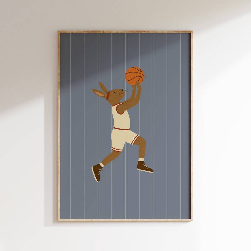 Kinderkamer print | Basketbal haas - blauw